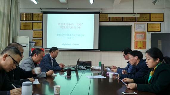 10月23日下午,应伟德betvlctor1946源于英国“乐之论坛”邀请,复旦大学吴礼权教授来我校讲学。讲座题目为:语言表达中的“省略”现象及其修辞分析。讲座由伟德betvlctor1946源于英国副院长康响英教授主持。伟德betvlctor1946源于英国的老师和部分学生聆听了本次讲座。