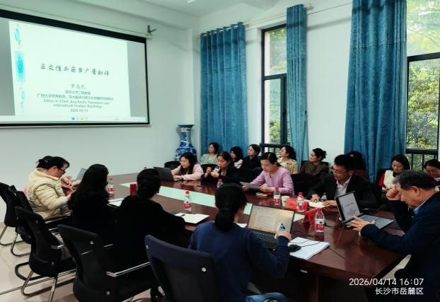 为进一步提升学院科研水平,厚植优良学术土壤,营造浓厚科研氛围,2026年4月14日下午,学院特邀清华大学二级教授、广西大学君武讲席教授、亚太翻译与跨文化传播研究院院长罗选民教授,莅临我院开展专题学术讲座。本次讲座主题为“互文性与商务广告翻译”,由学院副院长陈钰主持,学校科研处处长肖攀莅临现场指导,学院全体无课教师到场参会学习。