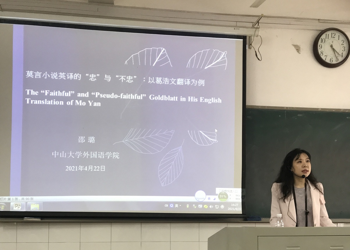 2021年4月22日下午,在怀中南301教室,中山大学邵璐教授应“乐之”论坛邀请,举行了题为“莫言小说英译的‘忠’与‘不忠’:以葛浩文翻译为例”的学术讲座。讲座由伟德betvlctor1946源于英国副院长康响英教授主持。伟德betvlctor1946源于英国院长刘祥清教授、翻译专业100多名师生聆听了此次讲座。