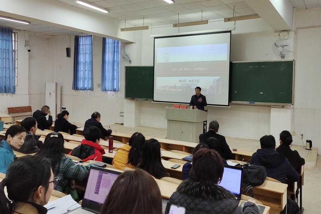 黄小喜处长首先为大家介绍了此次学校制定核心指标的目的和意义,然后结合学校“十四五”规划解读科研政策,提出实现核心指标的策略与路径,鼓励教师们为学校申硕攻坚克难,并表示将尽力为大家的科研做好服务工作。
