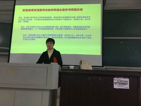 2017年12月12日下午,我院联盟学校长沙市芙蓉区东郡小学朱志虹老师应邀来我院讲学,题目是“得阅读者 得天下--说一说英语分级阅读”。16级、17级师范生聆听了讲座,教务办廖爱秀老师主持讲座。