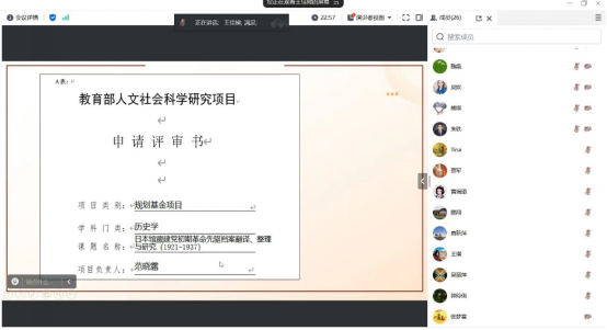 讲座中,范晓露博士从项目申报准备、选题、申报书撰写等方面做了经验分享。范博士指出,选题应聚焦国家和社会发展需求或学术前沿,在申报中要加强交流,多向专家请教,向优秀的同事学习,积极参加学术会议与同行交流,追踪相关研究领域学者的成果。她也针对普遍存在的科研压力大的问题提出做科研要“守得住寂寞,等得了花开的坚持”。讲座后,与会教师就史料收集方法、研究方向聚焦、研究方法等与主讲人做了交流。