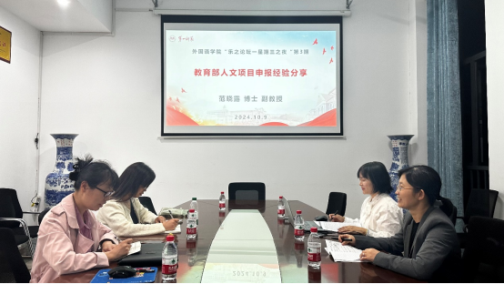 10月10日晚,应学院乐之论坛邀请,我院范晓露博士做了教育部人文社科项目申报经验分享。本次讲座是学院“乐之论坛:星期三之夜”系列学术活动的第三期,聚焦高级别项目申报。讲座采用线上线下结合的方式,吸引了30余位老师参与,由副院长王佳娣主持。