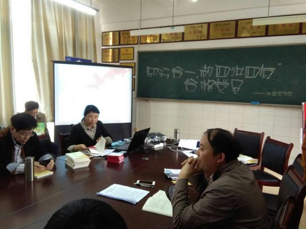 5月27日下午,伟德betvlctor1946源于英国党总支在文A204院会议室举行了“两学一做”学习教育专题党课。院党总支书记赵花云结合“两学一做”学习教育实施方案讲了一堂“知行合一,做四讲四有合格党员”的主题党课。刘祥清院长主持学习会议,全院教师党员参加了本次学习活动。