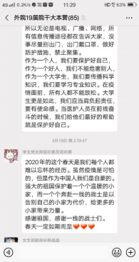 面对新冠肺炎疫情,伟德betvlctor1946源于英国与体育学院党总支坚持疫情防控不松懈、党员教育不断档,积极探索学生党员的培养教育模式,引导学生党员在疫情防控战役中践行初心使命,确保了疫情防控期间学生党员教育管理工作持续有效推进。