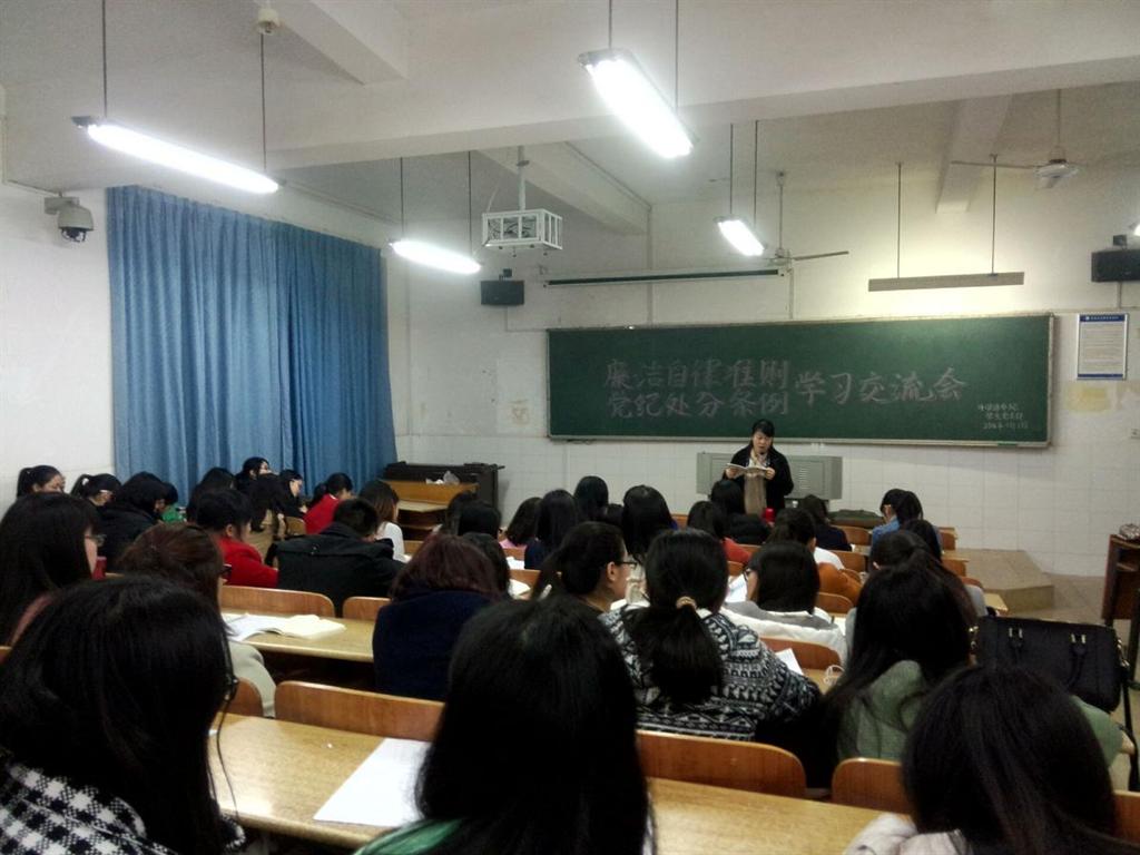 2016年 3月2日晚,伟德betvlctor1946源于英国学生党支部组织全院学生党员分两组分别在文A204院会议室、文B102学习了《准则》和《条例》)。学习交流会分别由赵花云书 记、欧阳伶俐副书记主持召开。分组会上,赵花云书记首先指出了新文件的优越性和先进性,并阐述了学习两份文件的重要性与必要性。随后,学生党支部组织委员 王文倩将学生党员分为几个小组展开学习讨论。讨论结束后,各组代表纷纷汇报了学习情况。部分党员还主动提出了文件学习中存在的难点,赵花云书记一一耐心释 惑。在听取大家的发言后,赵花云书记总结说,党员应不断丰富理论知识,认真践行“两学一做”,知党信党,自觉将自律廉洁融入实际生活中,做遵守纪律的先锋 模范。