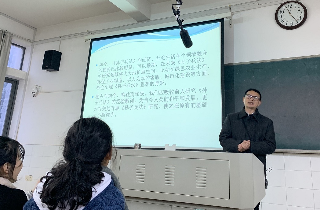 《孙子兵法》是我国古代著名的兵书,揭示了战争的若干客观规律,具有朴素的唯物主义和辩证法思想;也是一部优秀的文学著作,有“知己知彼,百战不殆”,实为国粹之精华。带兵打仗与做好党建工作有异曲同工之处,若在党建工作中巧用《孙子兵法》的智慧与精髓,可取得事半功倍的效果。有鉴于此,翻译专业教研室党支部根据本支部的专业特点,举办了“《孙子兵法》的翻译与传播”的专题讲座。刘教授从《孙子兵法》的现实意义出发,阐释了《孙子兵法》的主要内容及《孙子兵法》在日本、俄罗斯、美国、欧洲、非洲等国家的翻译与传播情况。