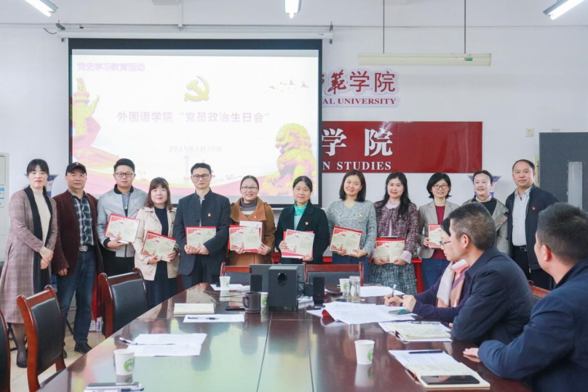 苏美华教授为9名党员送上生日祝福,勉励全体党员要睁开眼睛看世界,利用专业优势,对外宣传好中华优秀文化,架起中西文化交流的桥梁;要牢记教师使命,不忘根本,培养合格的社会主义建设者和接班人;要以“峰高无坦途”为激励自己的警语,树立终身学习的理念,不断奋进,提高自身素养。