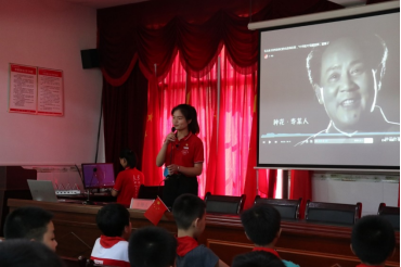 (图为服务团成员正在为孩子们开展党史教育课。)