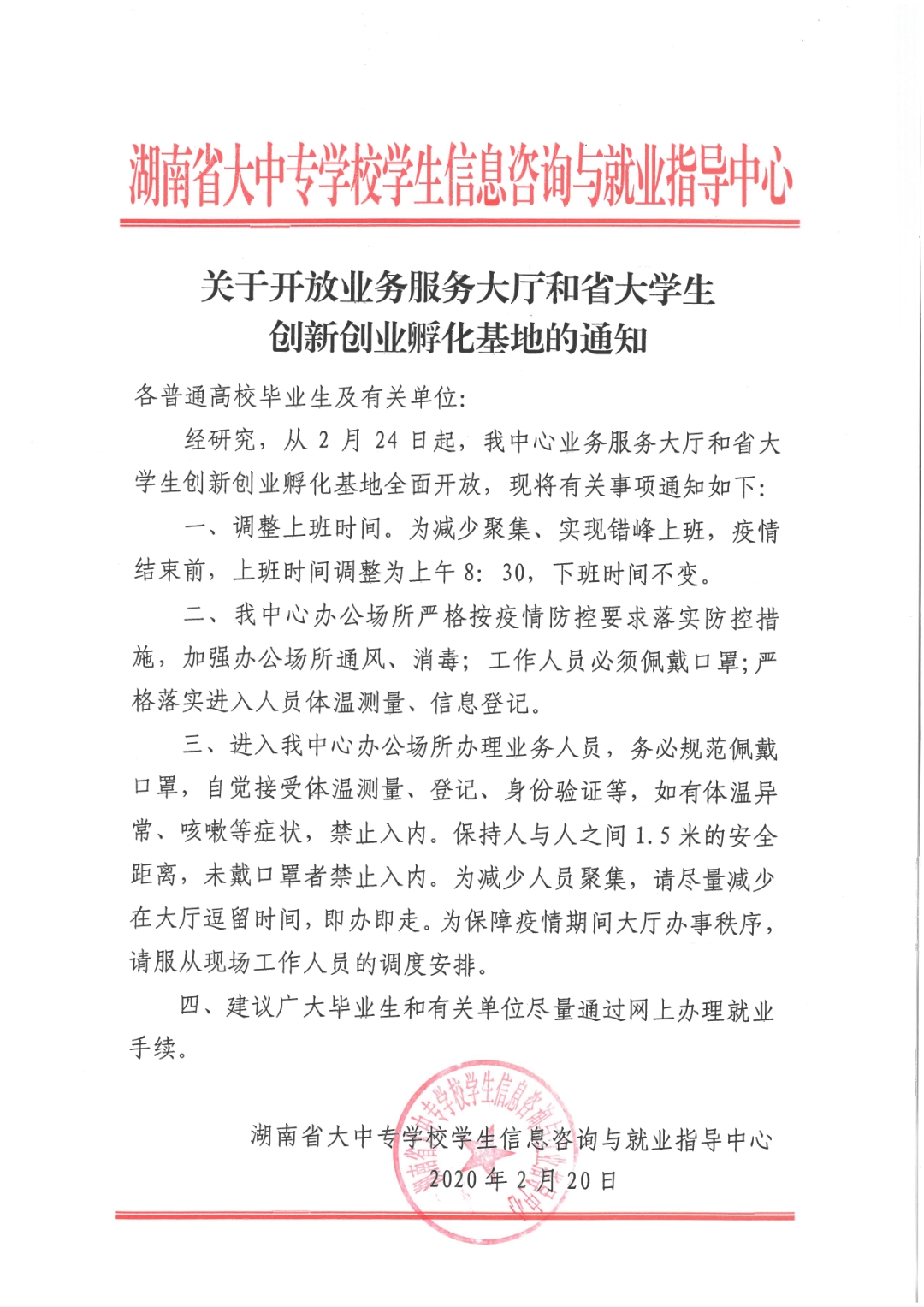关于开放业务服务大厅和省大学生创新创业孵化基地的通知