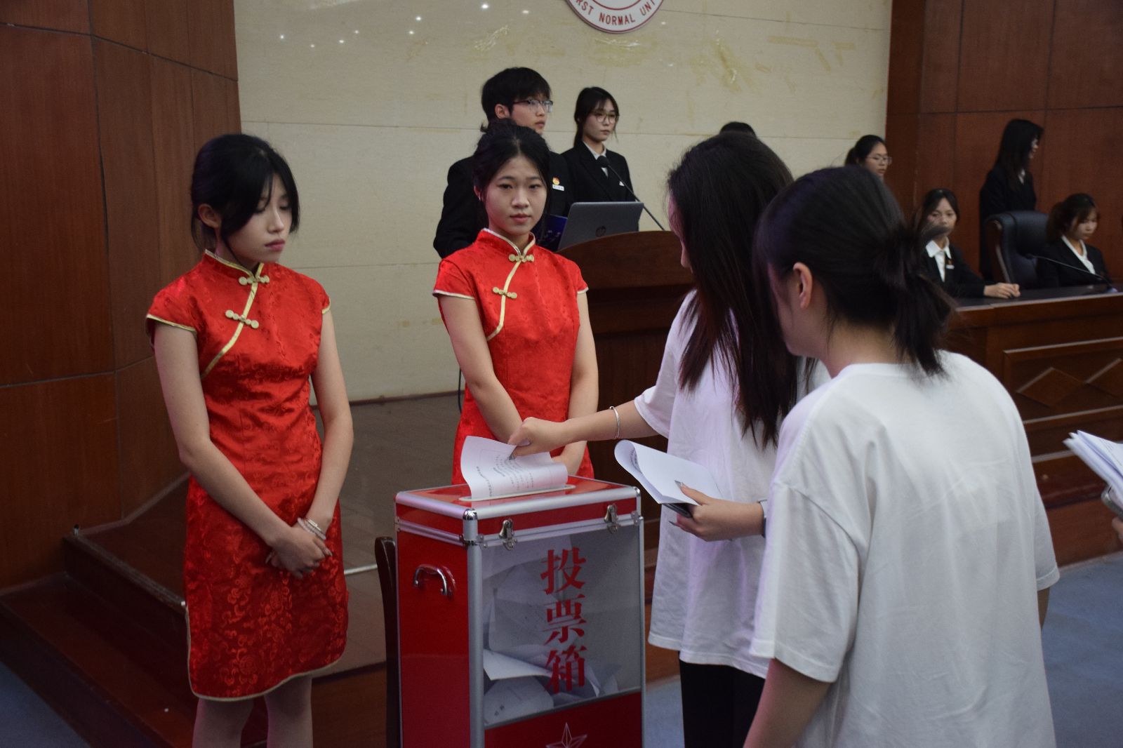 第二次全体会议由董敖主持。会议依次表决通过《伟德betvlctor1946源于英国第三届学生会主席团成员候选人名单(草案)》《伟德betvlctor1946源于英国第三次学生代表大会常任代表委员会委员名单(草案)》等重要文件,明确选举相关的总监票人、监票人、总计票人、计票人名单 。随后开展选举,代表们认真行使权利,选出伟德betvlctor1946源于英国第三届学生会主席团成员与常任代表委员会委员。最后,公布选举结果,为学生会后续工作搭建新的组织框架。