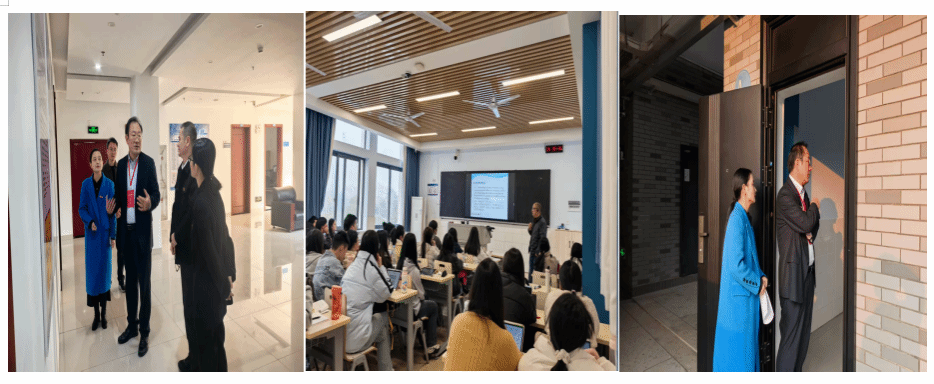 会后,陈世华教授实地参观了学院语音室、录播室等教学场地,并深入课堂一线开展巡课听课,细致考察课堂教学细节研判教学质量。