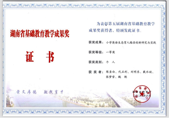 近日,省教育厅发文公布第五届湖南省基础教育教学成果奖获奖项目及第十三届湖南省高等教育教学成果奖获奖项目。我院陈圣白副院长(主持行政工作)负责申报的基础教育教学成果项目“小学英语生态育人路径创新研究与实践”荣获一等奖,并作为核心成员参与申报的高等教育教学成果项目“修身立德自主养成:卓越乡村教师‘五位一体、六维共育’养成教育体系改革行动”荣获特等奖。院党委书记刘祥清教授负责申报的高等教育教学成果项目“红色引领,绿色发展:卓越乡村小学英语教师培养一师实践”荣获三等奖。