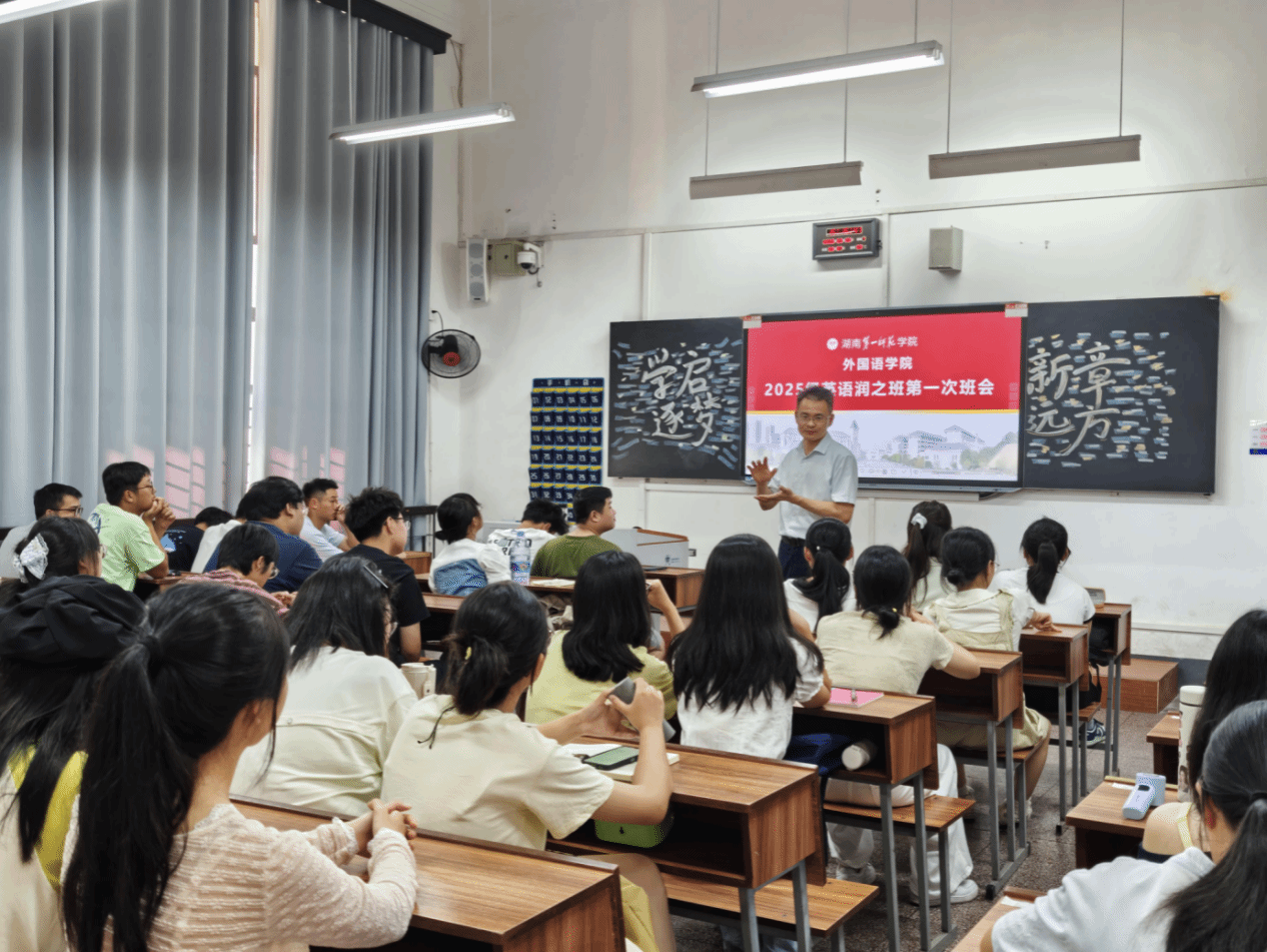 2025年9月28日下午,25级英语润之班在城南校区火炬图书馆301教室举行了以“学启新章,逐梦远方”为主题的首次班会。本次主题班会学院副书记兼辅导员戴建宇、班主任蒋倩博士参加,与全体同学展开深入交流,共话大学学习、生活、成长新篇章。