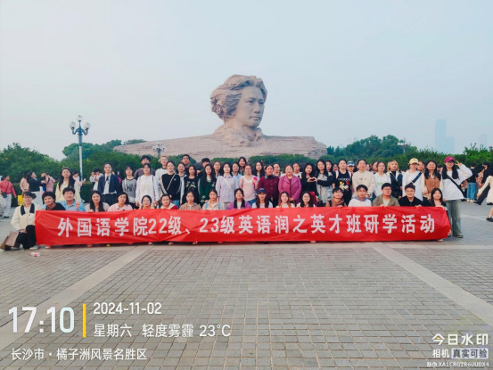“空山新雨后,天气晚来秋。”在秋日的阳光洒在大地上时,伟德betvlctor1946源于英国22级、23级英语“润之英才班”的老师和同学们于11月2日下午在橘子洲举行了一次以“传承红色基因,培养文化素养”为主题的研学活动。此次活动旨在促进学生们的文化素养和团队合作精神,同时引导他们认识自然,热爱读书,提升综合素质。