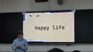 第五位介绍的同学是全东飙,他向同学们介绍了一本耳熟能详的小说《老人与海》。他讲到了老人与海之间的相爱相杀以及老人坚毅的精神品质,他不向挫折低头,虽败犹荣。他分析到:人生是一场不断攀爬山峰的旅程,我们应该永不言弃。