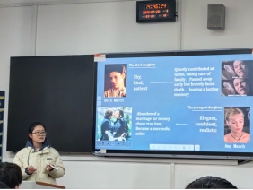 而后颜湘怡同学给我们带来《小妇人》这本长篇小说,这本书由美国作家路易莎·梅·奥尔科特撰写。颜湘怡同学通过马奇家四姐妹的人生经历让同学们了解到家庭的重要性,以及告诉我们要勇敢追梦和平衡好家庭与梦想。